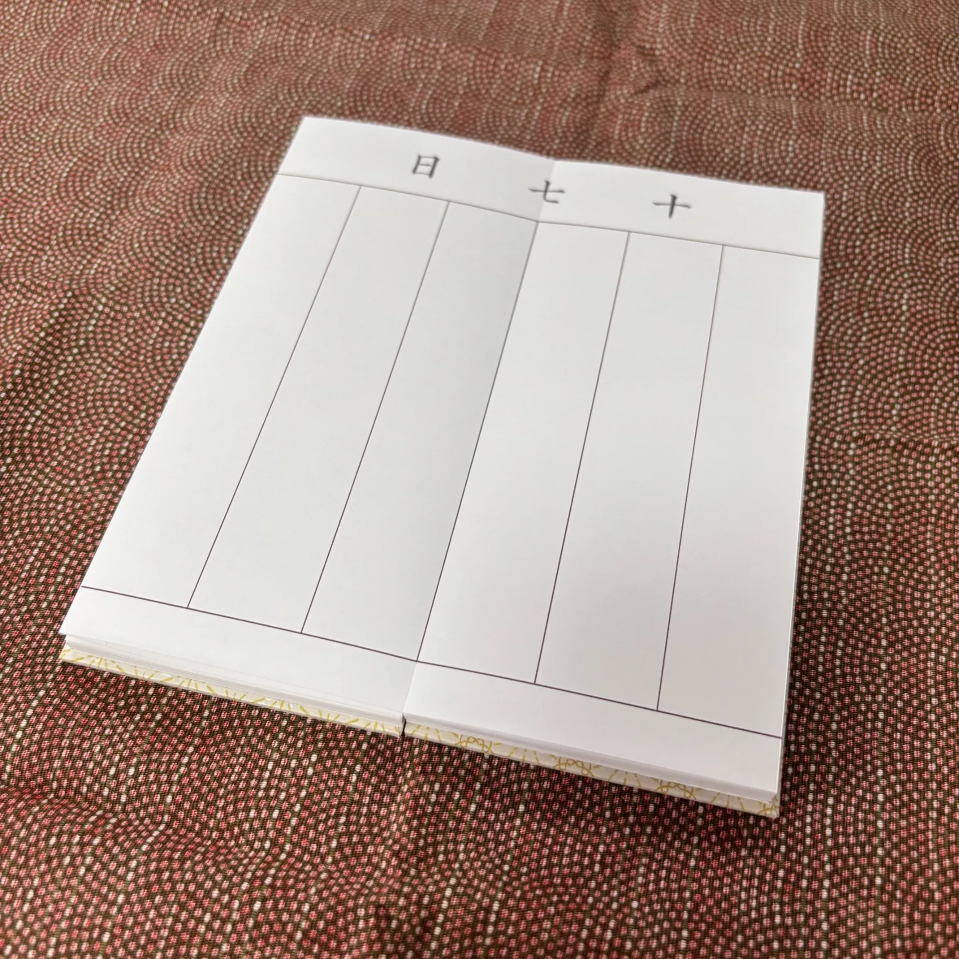【特製過去帳】は、創価学会員以外の方でもご使用いただけるように、記帳面には日付以外は何も記載されていません。